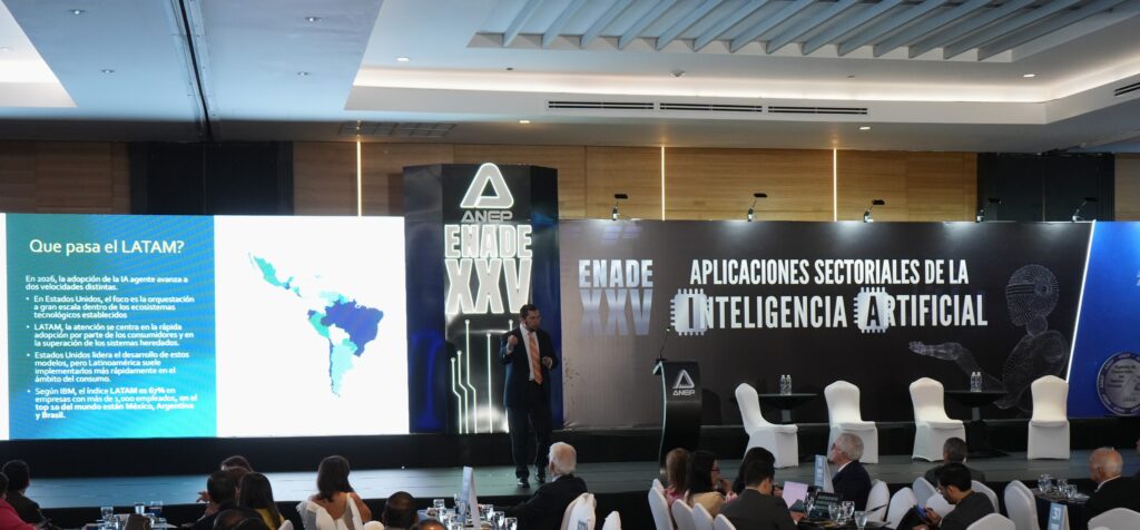 En el marco de la vigésima quinta edición del Encuentro Nacional de la Empresa Privada, ENADE XXV, organizado por la Asociación Nacional de la Empresa Privada (ANEP), se desarrolló la ponencia “Cómo afecta la tecnología en los empleos hacia 2030”, presentada por el director ejecutivo Mario Padilla, quien analizó el impacto y las oportunidades que la inteligencia artificial está generando en el mercado laboral y en la transformación empresarial.